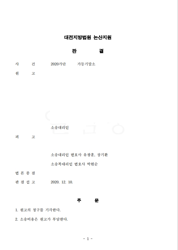 민사)가등기말소(실제판결문 첨부) 페이지 정보 법무법인시우 작성일21-01-12 목록 본문 법무법인 시우의 유광훈변호사, 장기환 변호사가 담당하여 승소를 이끌어낸 가등기말소 사건입니다. 사안 가등기 말소 청구 사건에서 피고를 대리하여 전부 승소하였습니다. 목록