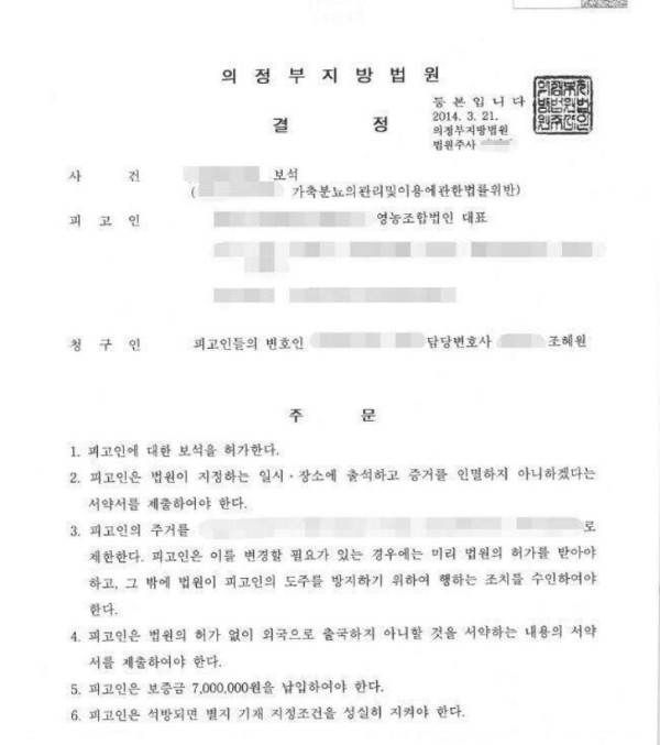 피고는 가축분뇨 액비화처리 업체인 영농조합법인의 대표로서 적정하게 처리되지 않은 가축비뇨가 공공수역에 유입되도록 했다는 이유로 체포되어 구속상태로 수사 받고, 기소되어 공판단계에서 연락을 주셨습니다.