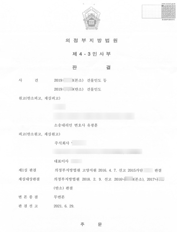 민사 - 건물인도 및 손해배상 성공사례 (실제판결문 첨부)