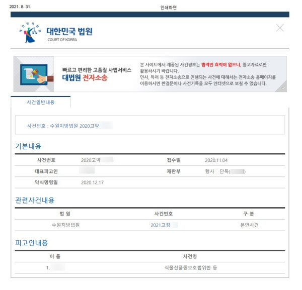 형사-식물신품종보호법위반 성공사례 (법원사건검색 첨부)