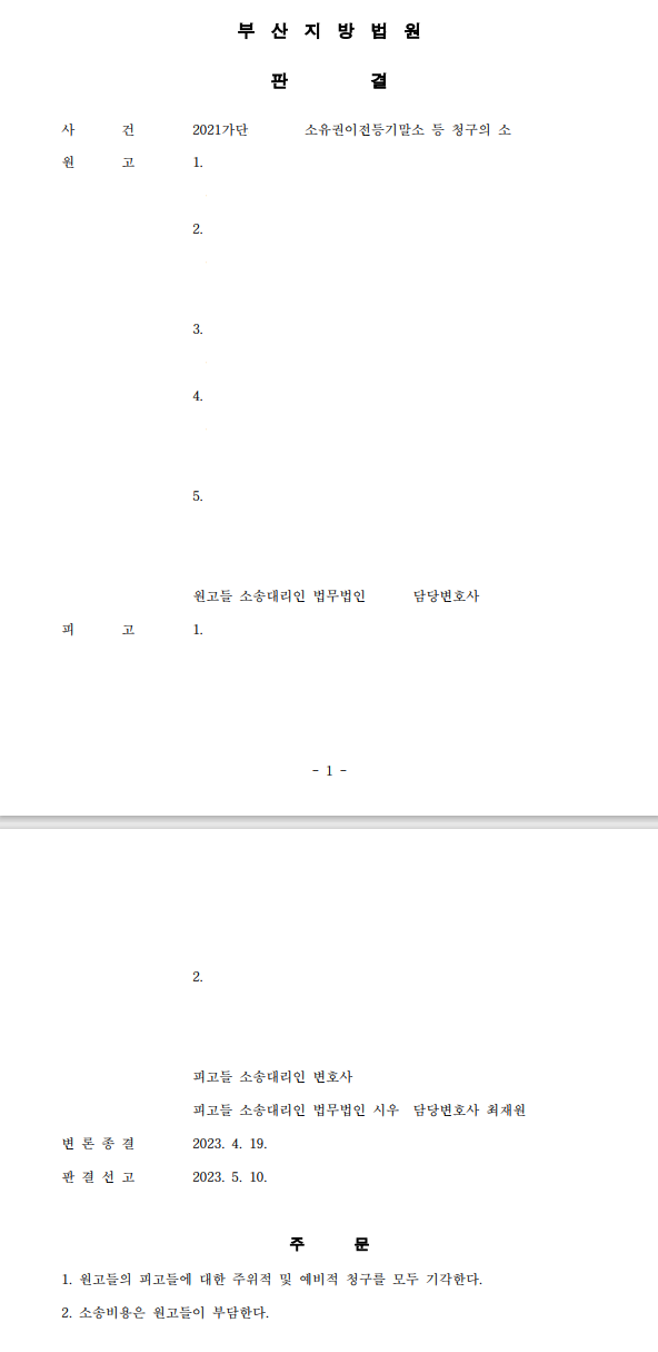 민사 - 소유권이전등기말소 성공 사례 (실제 판결문 첨부)