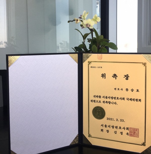 柳承昊律师被委任为首尔地方律师协会国际委员会委员