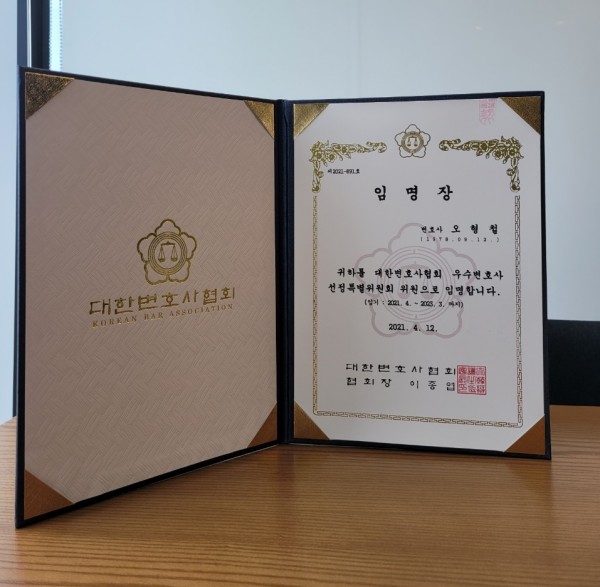 吴亨哲律师被任命为大韩律师协会优秀律师选定特别委员会委员 页面信息 법률사무소시우 日期21-12-21 内容 时雨律师事务所吴亨哲律师被任命为大韩律师协会优秀律师选定特别委员会委员,任期为2021年4月至2023年3月。 列表 回复