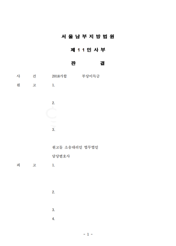 부동산 부당이득반환 (실제판결문 첨부)