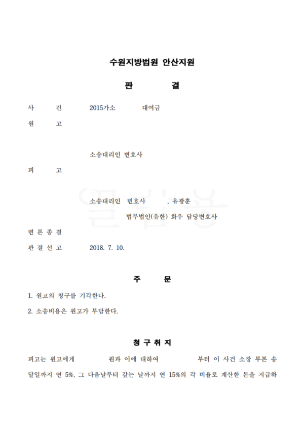성공사례는 실제 판결문으로 말씀 드립니다.