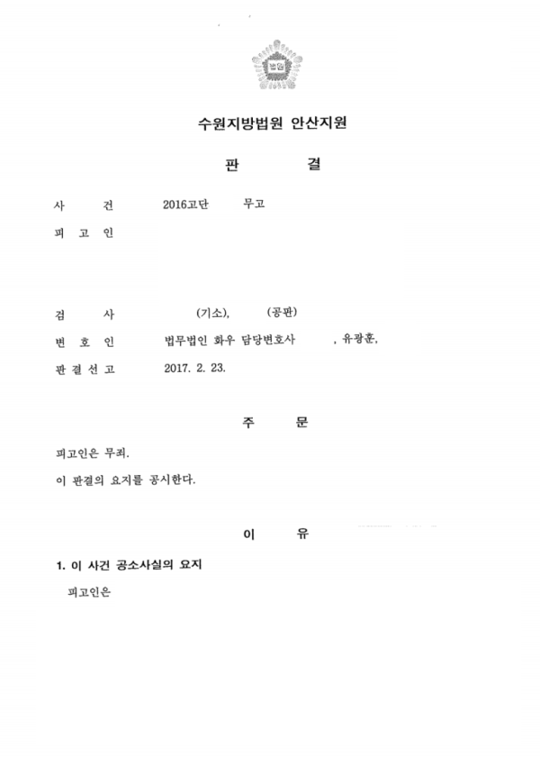 형사 - 무고죄 (무죄판결) (실제판결문 첨부) 페이지 정보 법무법인시우 작성일21-04-04 목록 본문 성공사례는 실제 판결문으로 말씀 드립니다. 제1심. 무죄판결 선고 제2심. 무죄판결 선고 유광훈 변호사 이 업무는 위 변호사가 담당하였습니다. 목록