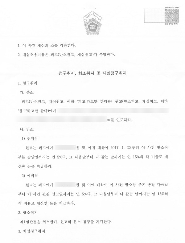 이 사건은 위 판결 이후 임차인 회사가 임대인을 상대로 재심을 청구하였는데, 임대인 측 변호사가 소송비용 담보제공 명령신청을 하여서, 재심사건을 각하판결로 종결되도록 이끈 사건입니다(의뢰인 전부승소).